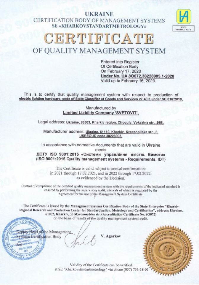 Застосовуючи останні досягнення в області високоефективного фітоосвітлення, наша команда пропонує майбутнім партнерам по всьому світу світильники для вирощування рослин, які мають єфективні переваги за конкурентоздатною ціною. Висока якість продукції підтверджується наявністю сертифікованого виробництва згідно із стандартами ISO 9001-2015 та європейськими, екологічними комплектуючими, що не вимагають утилізації, а також гарантійним терміном служби світильників від 5 років.